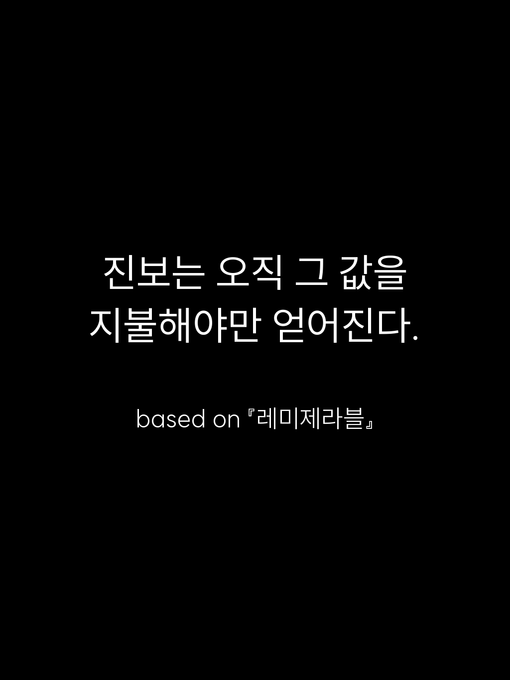 • 진보는 오직 그 값을 지불해야만 얻어진다. – based on 『레미제라블』
