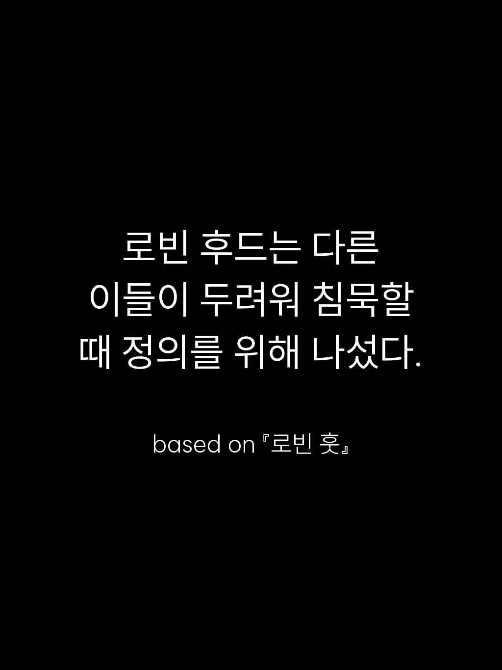 • 로빈 후드는 다른 이들이 두려워 침묵할 때 정의를 위해 나섰다. – based on 『로빈 훗』