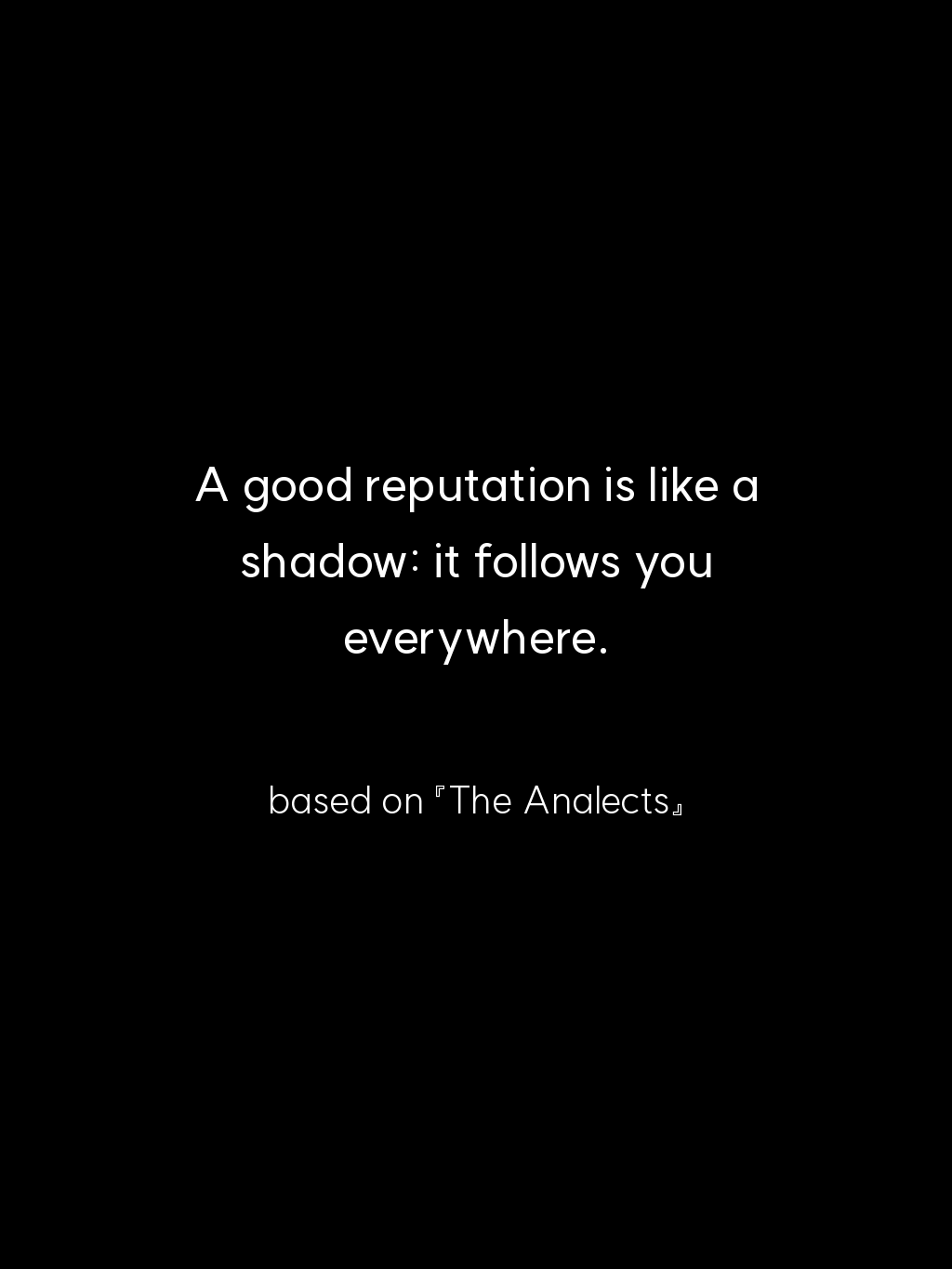 • A good reputation is like a shadow: it follows you everywhere. – based on 『The Analects』