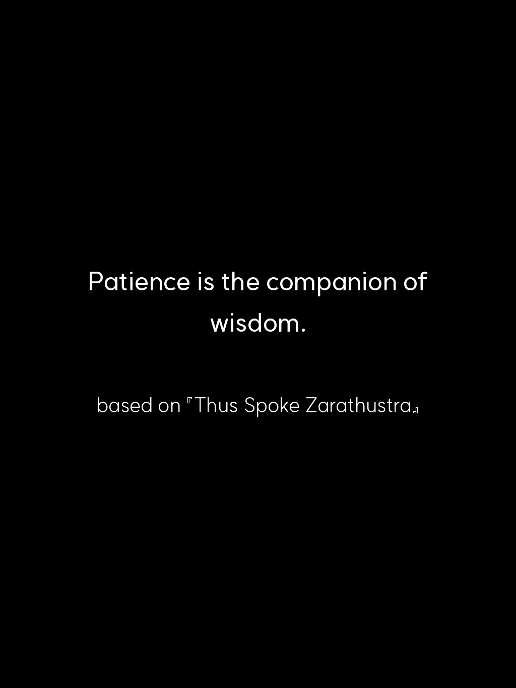 • Patience is the companion of wisdom. – based on 『Thus Spoke Zarathustra』