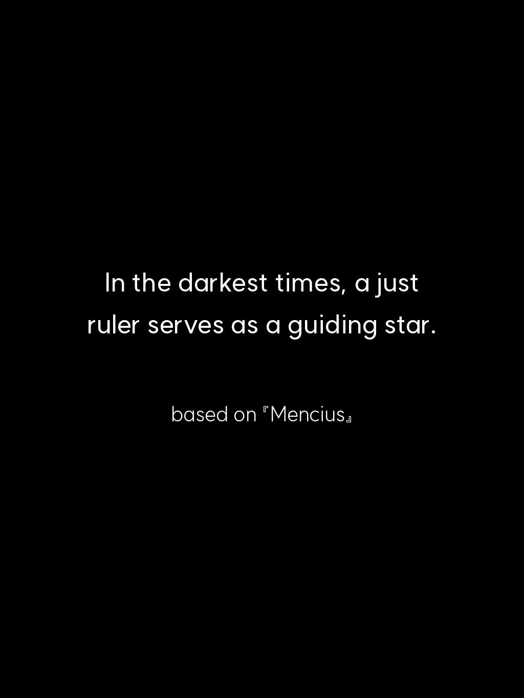 • In the darkest times, a just ruler serves as a guiding star. – based on 『Mencius』