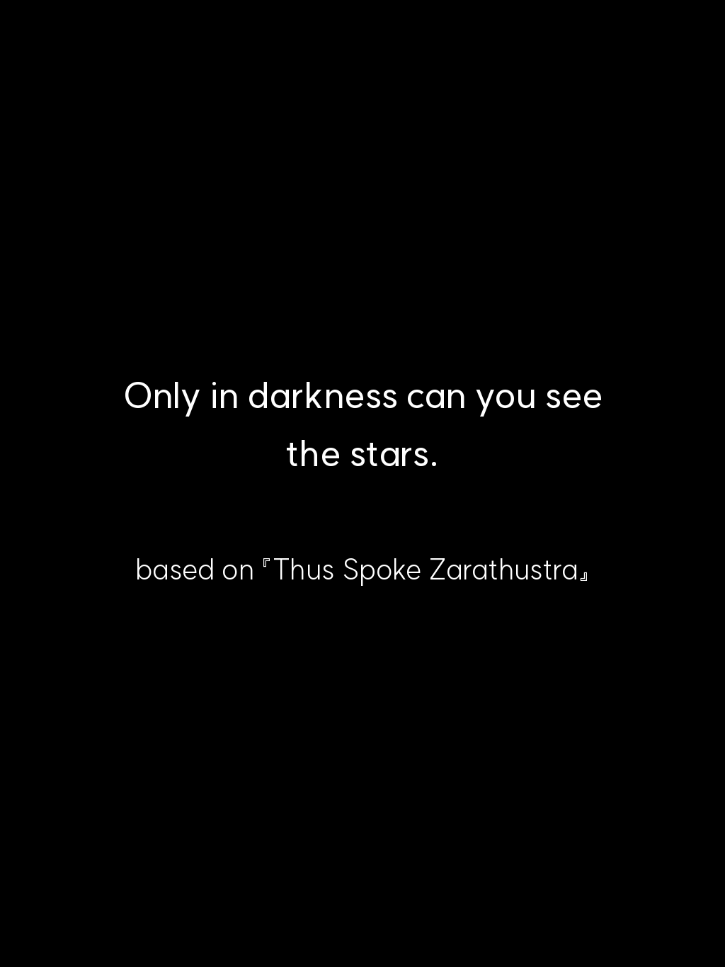 • Only in darkness can you see the stars. – based on 『Thus Spoke Zarathustra』