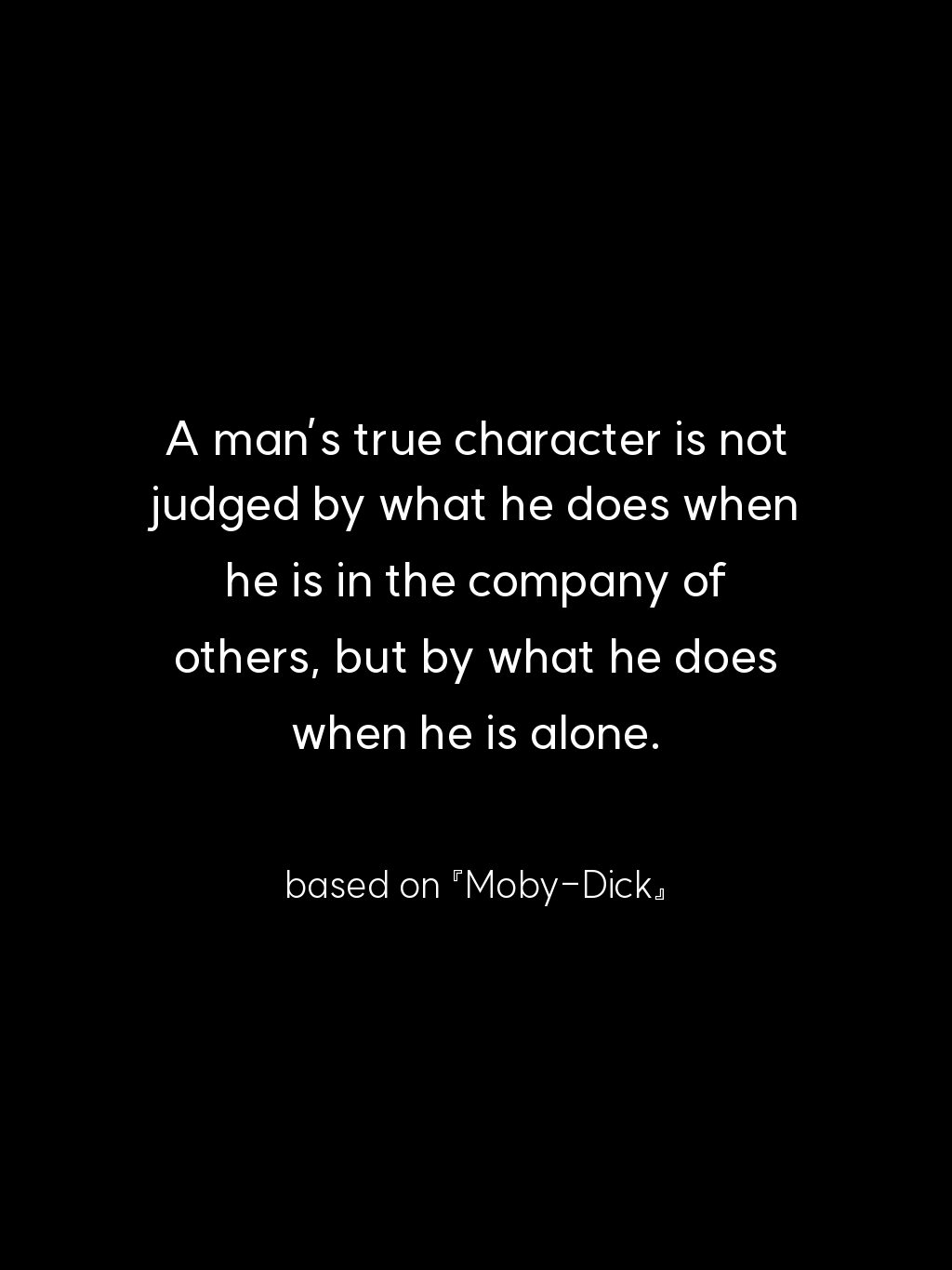 • A man’s true character is not judged by what he does when he is in the company of others, but by what he does when he is alone. – based on 『Moby-Dick』