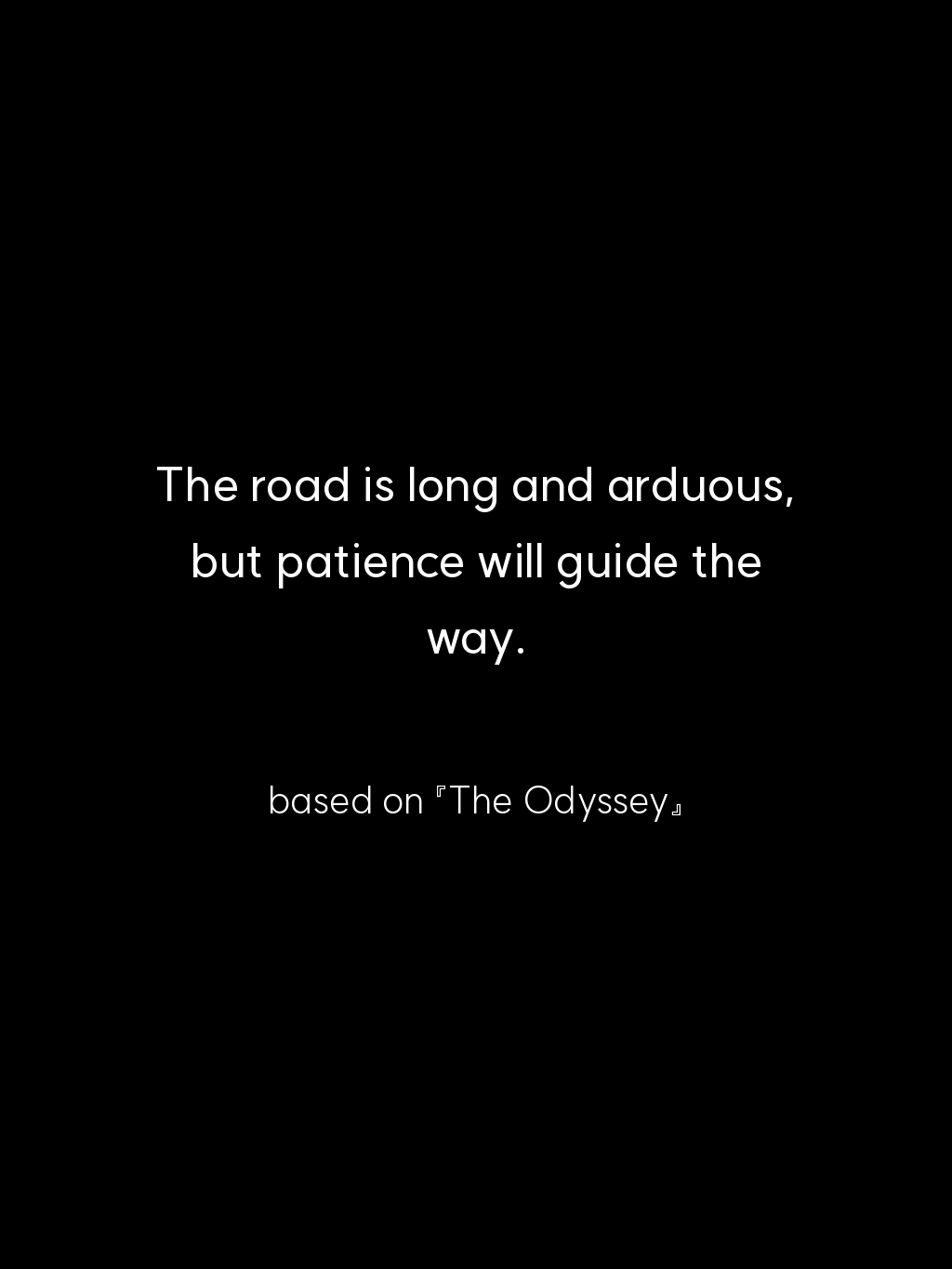 • The road is long and arduous, but patience will guide the way. – based on 『The Odyssey』