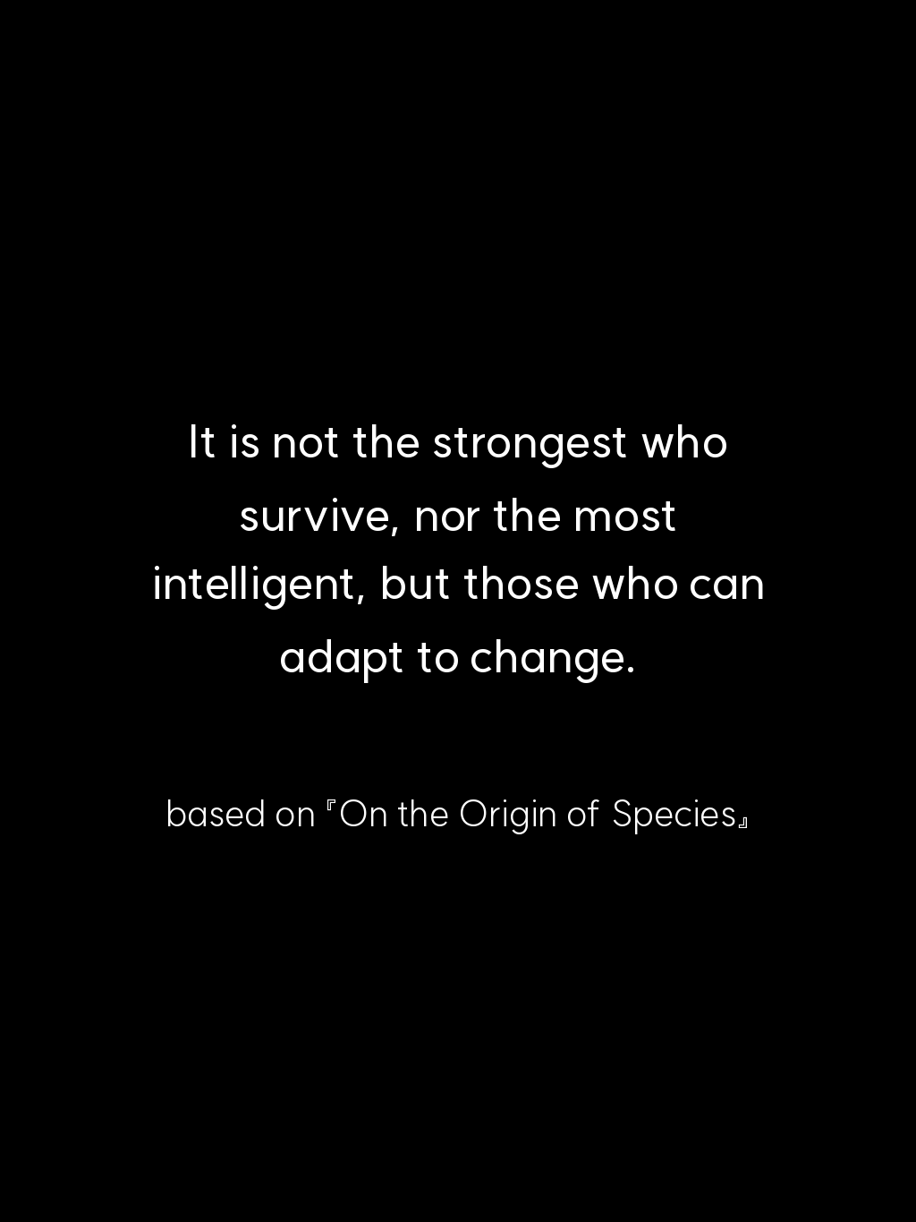 • It is not the strongest who survive, nor the most intelligent, but those who can adapt to change. – based on 『On the Origin of Species』