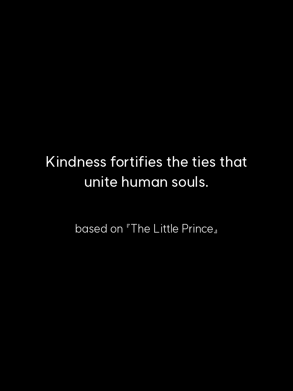 • Kindness fortifies the ties that unite human souls. – based on 『The Little Prince』
