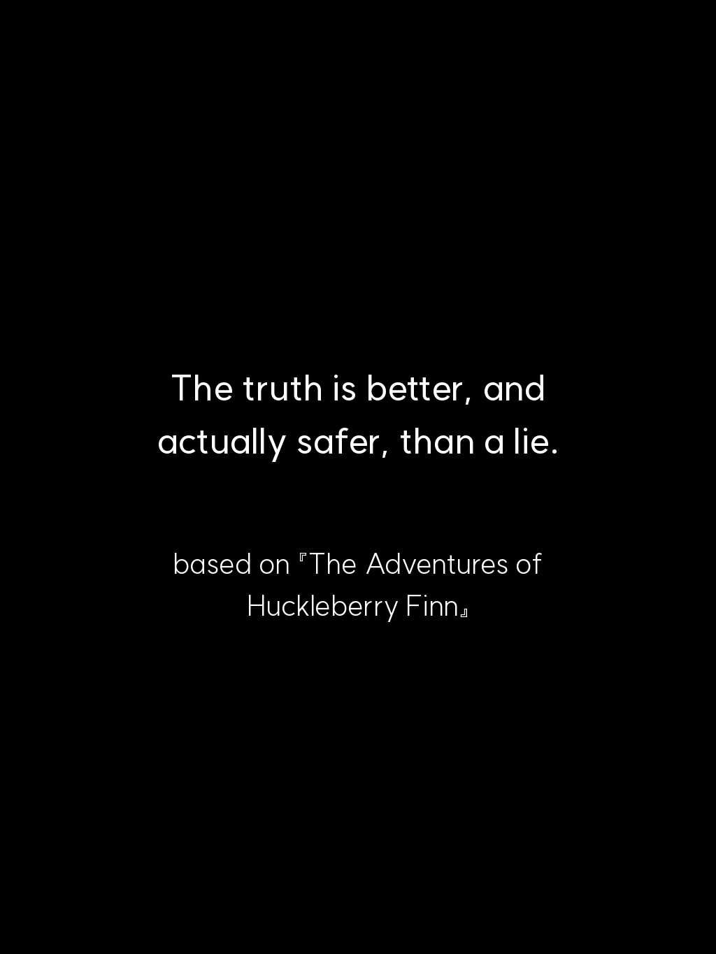 • The truth is better, and actually safer, than a lie. – based on 『The Adventures of Huckleberry Finn』