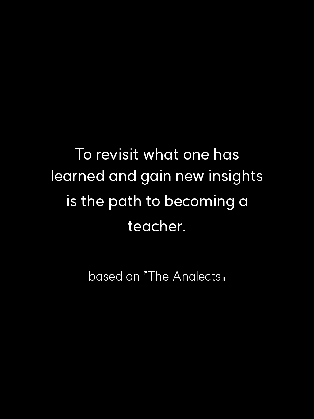 • To revisit what one has learned and gain new insights is the path to becoming a teacher. – based on 『The Analects』