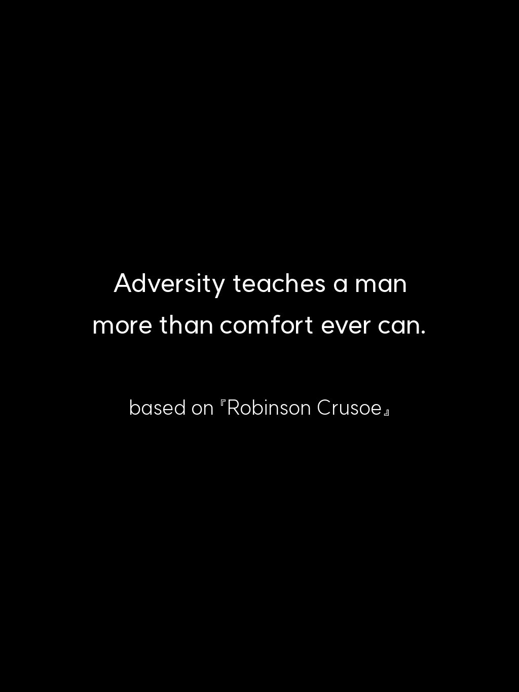 • Adversity teaches a man more than comfort ever can. – based on 『Robinson Crusoe』