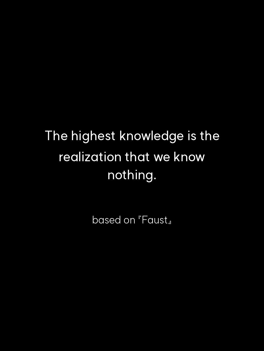• The highest knowledge is the realization that we know nothing. – based on 『Faust』
