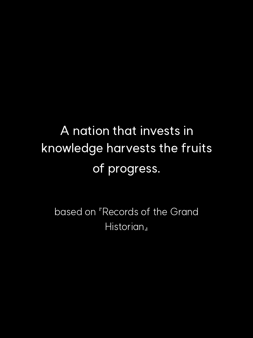 • A nation that invests in knowledge harvests the fruits of progress. – based on 『Records of the Grand Historian』
