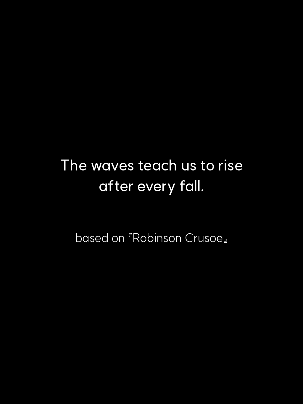 • The waves teach us to rise after every fall. – based on 『Robinson Crusoe』