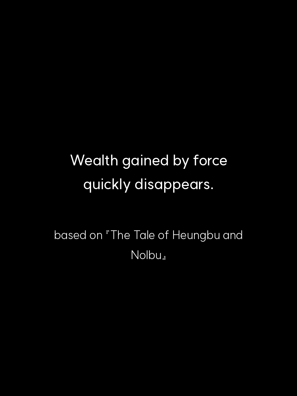 • Wealth gained by force quickly disappears. – based on 『The Tale of Heungbu and Nolbu』