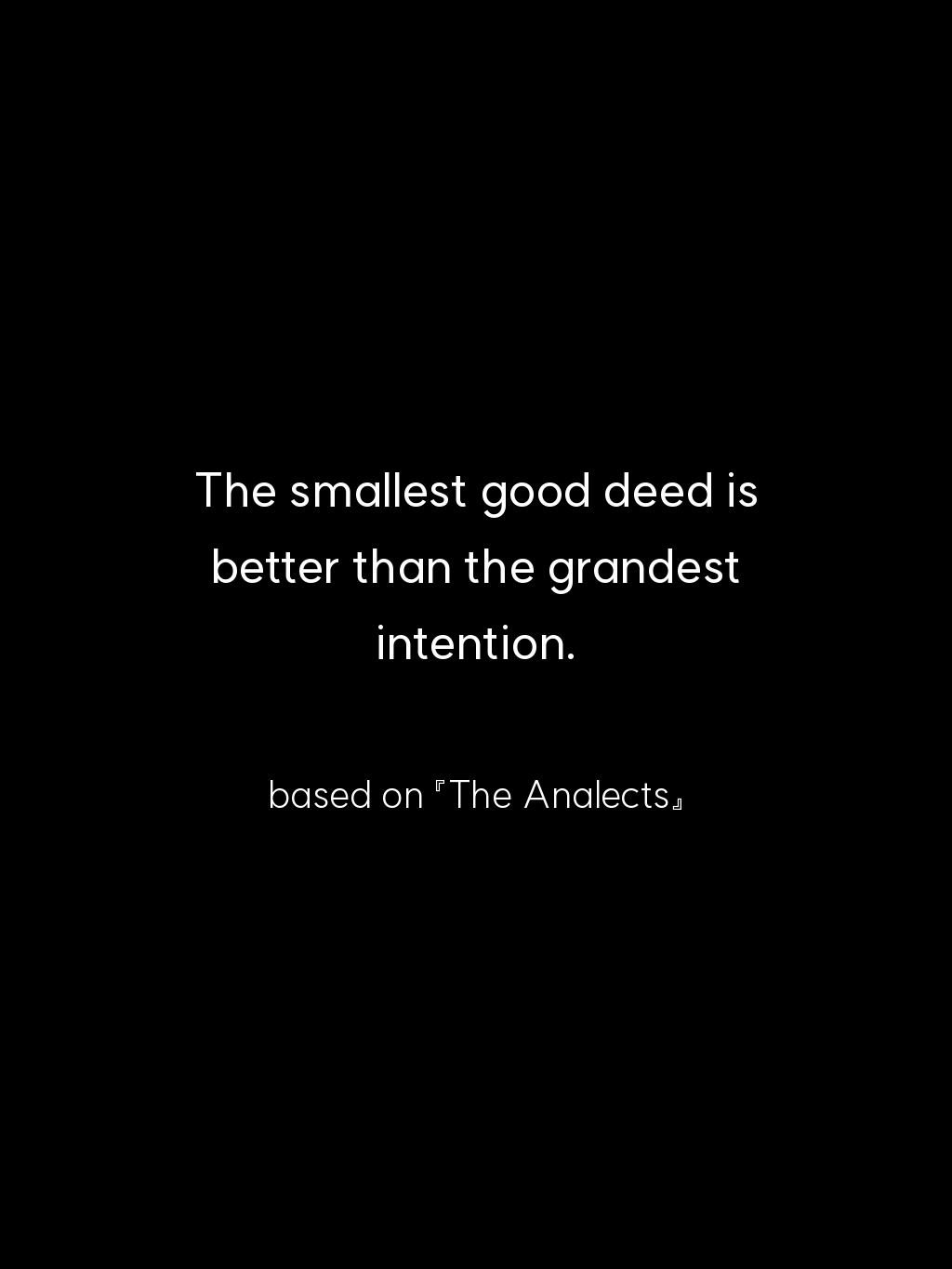 • The smallest good deed is better than the grandest intention. – based on 『The Analects』