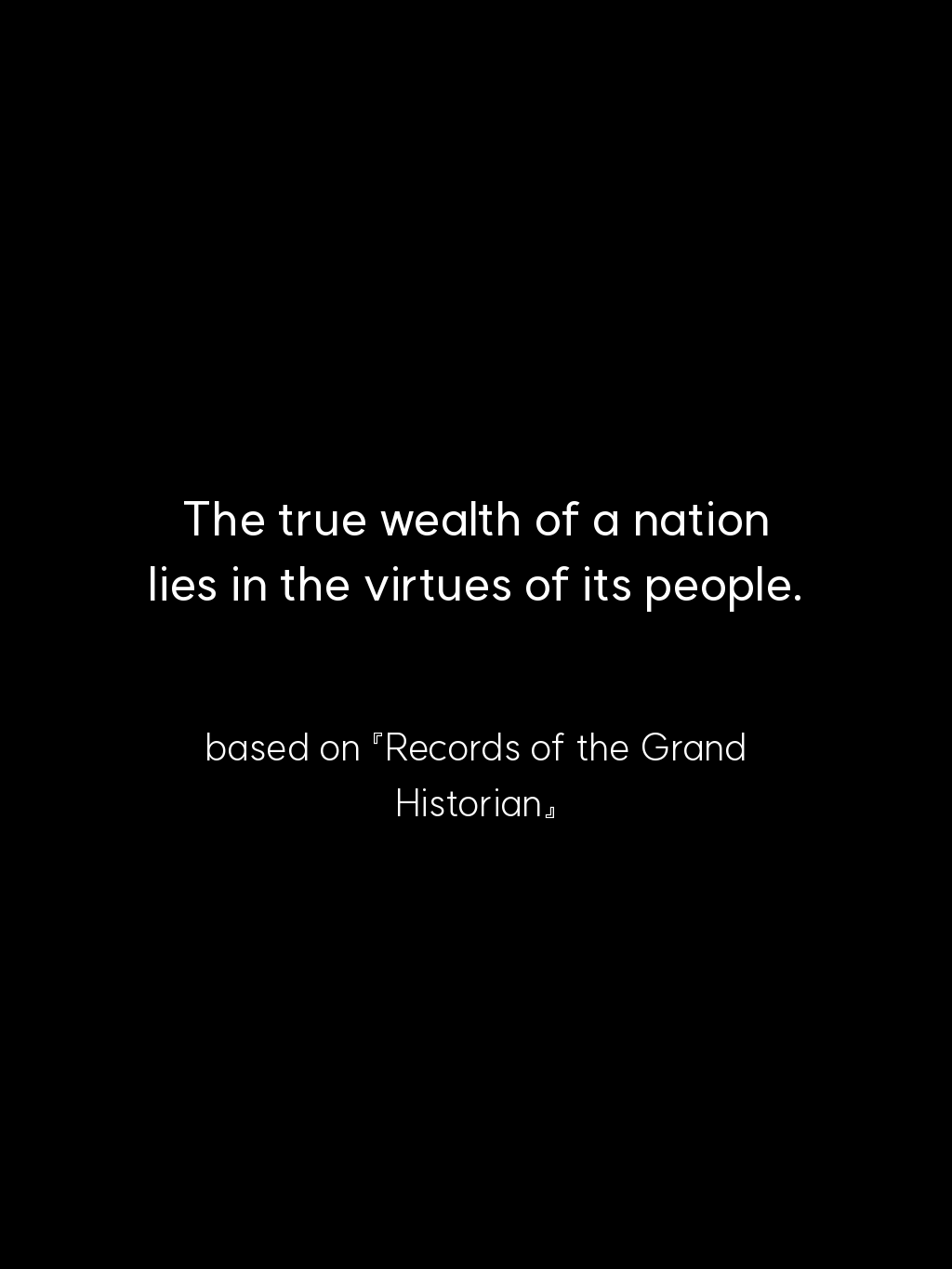 • The true wealth of a nation lies in the virtues of its people. – based on 『Records of the Grand Historian』