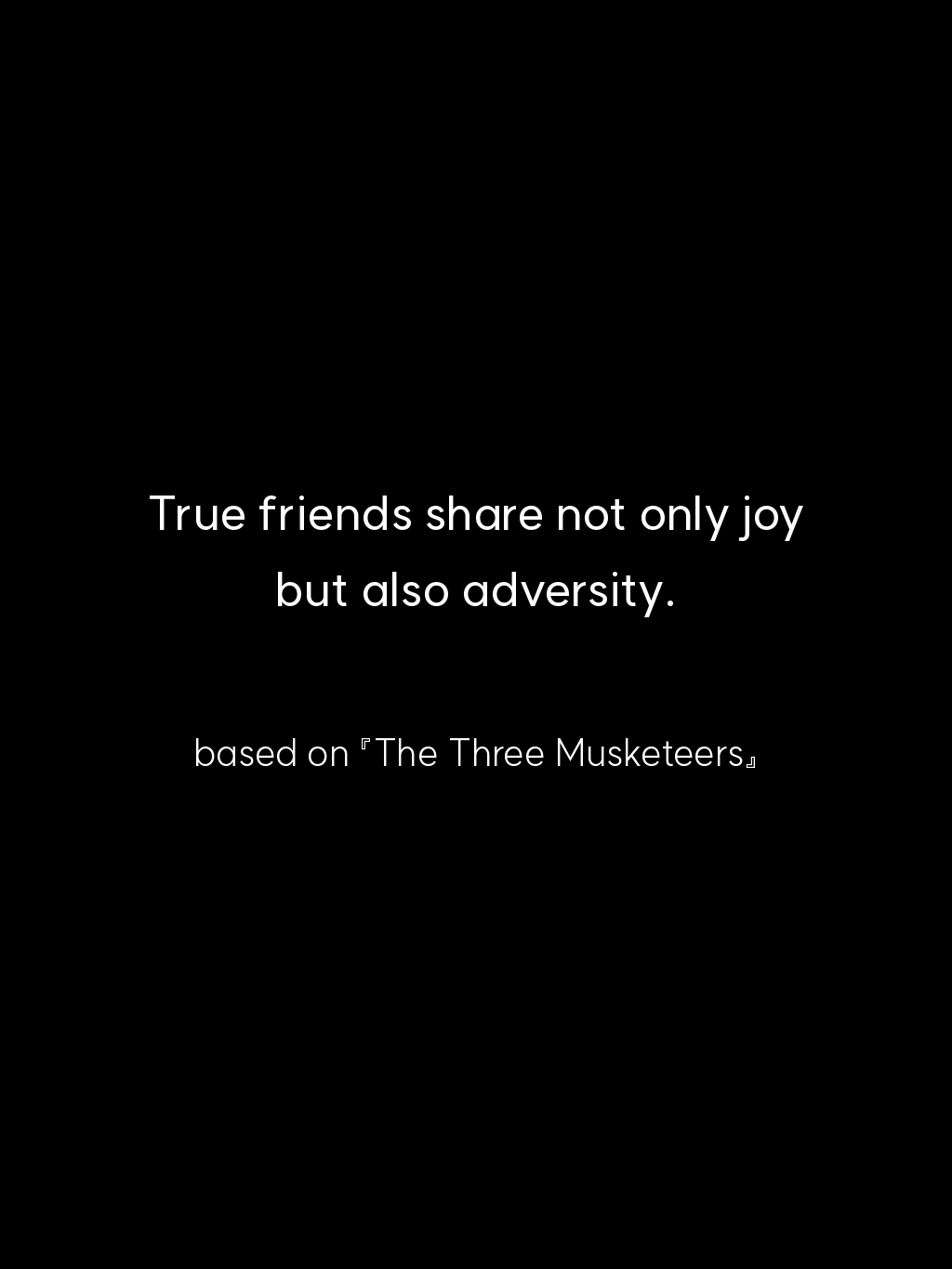 • True friends share not only joy but also adversity. – based on 『The Three Musketeers』