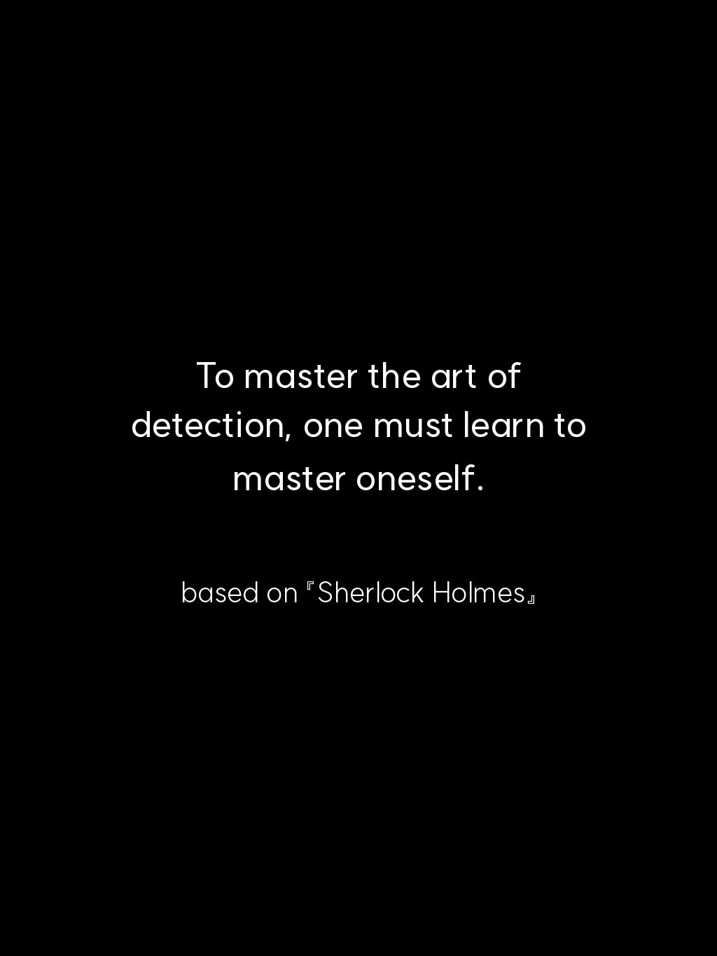 • To master the art of detection, one must learn to master oneself. – based on 『Sherlock Holmes』