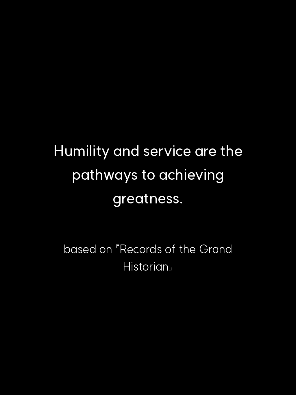 • Humility and service are the pathways to achieving greatness. – based on 『Records of the Grand Historian』