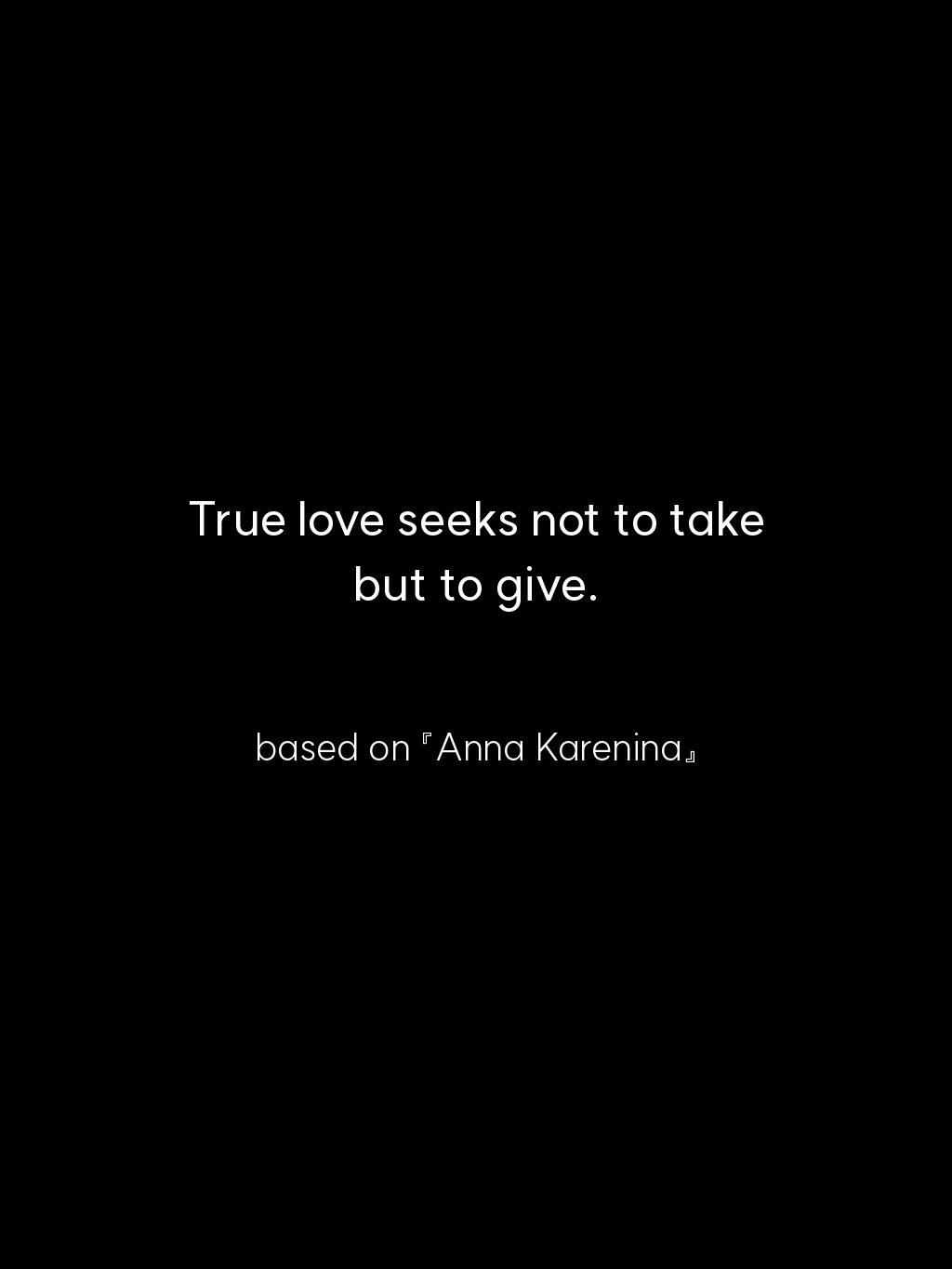 • True love seeks not to take but to give. – based on 『Anna Karenina』
