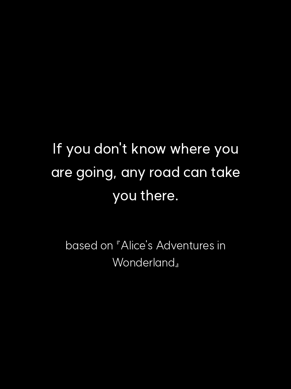 • If you don’t know where you are going, any road can take you there. – based on 『Alice’s Adventures in Wonderland』