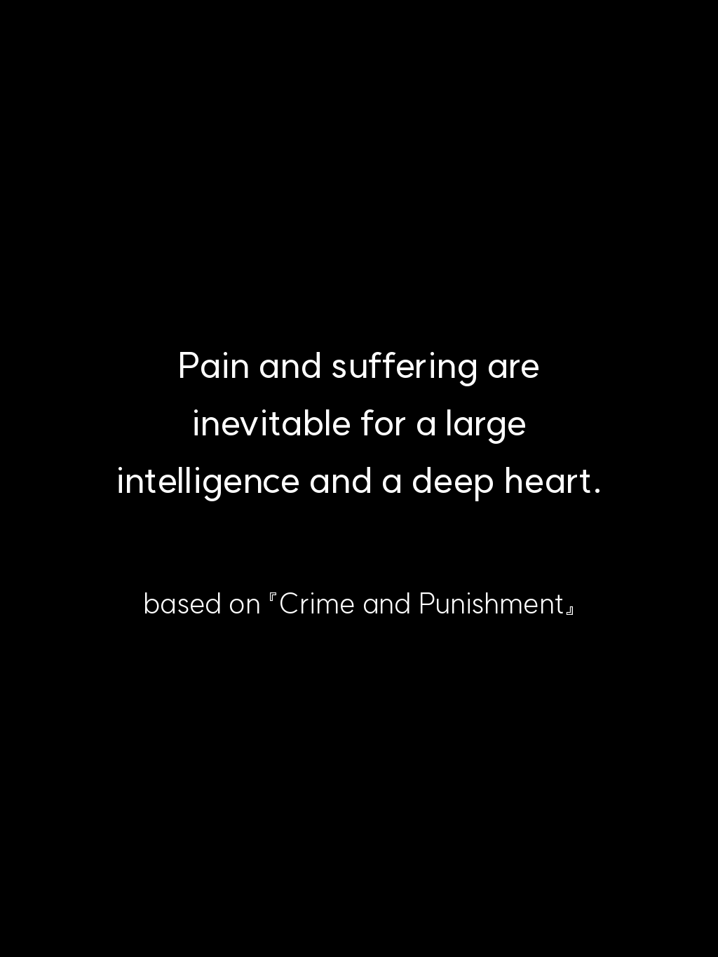 • Pain and suffering are inevitable for a large intelligence and a deep heart. – based on 『Crime and Punishment』