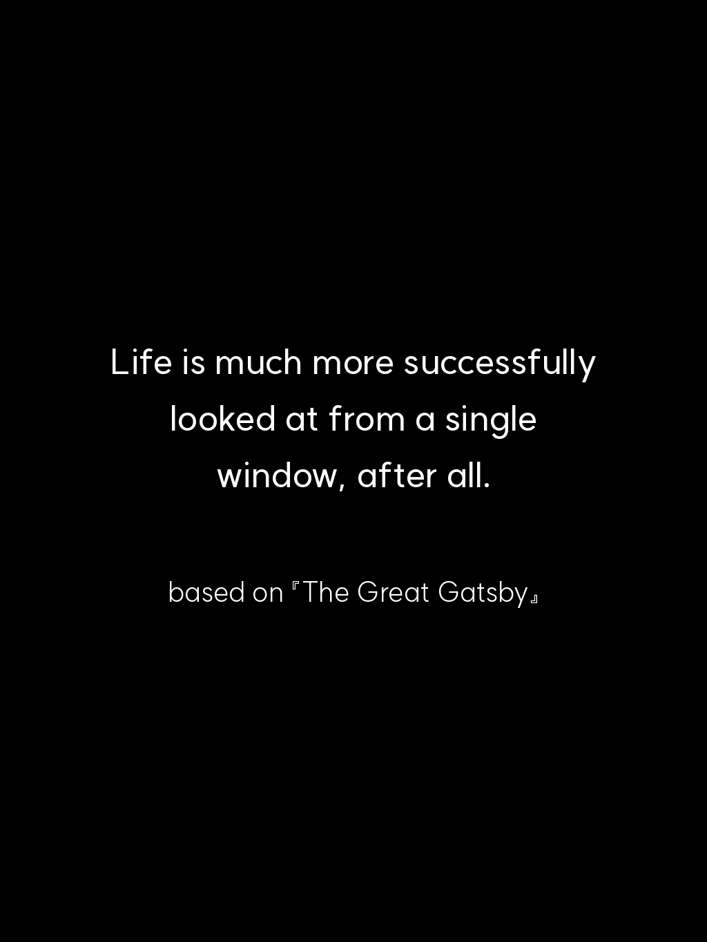• Life is much more successfully looked at from a single window, after all. – based on 『The Great Gatsby』