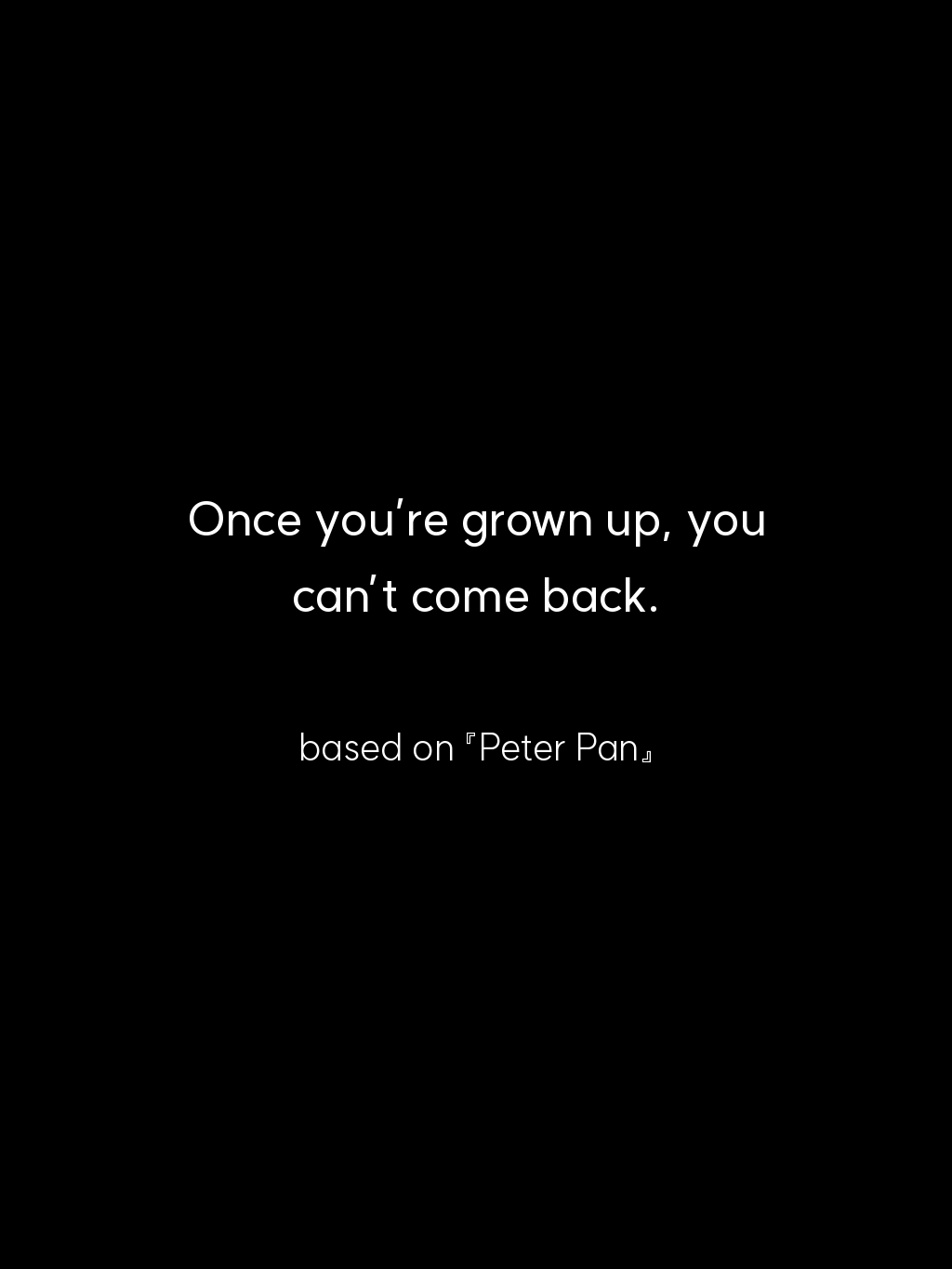 • Once you’re grown up, you can’t come back. – based on 『Peter Pan』