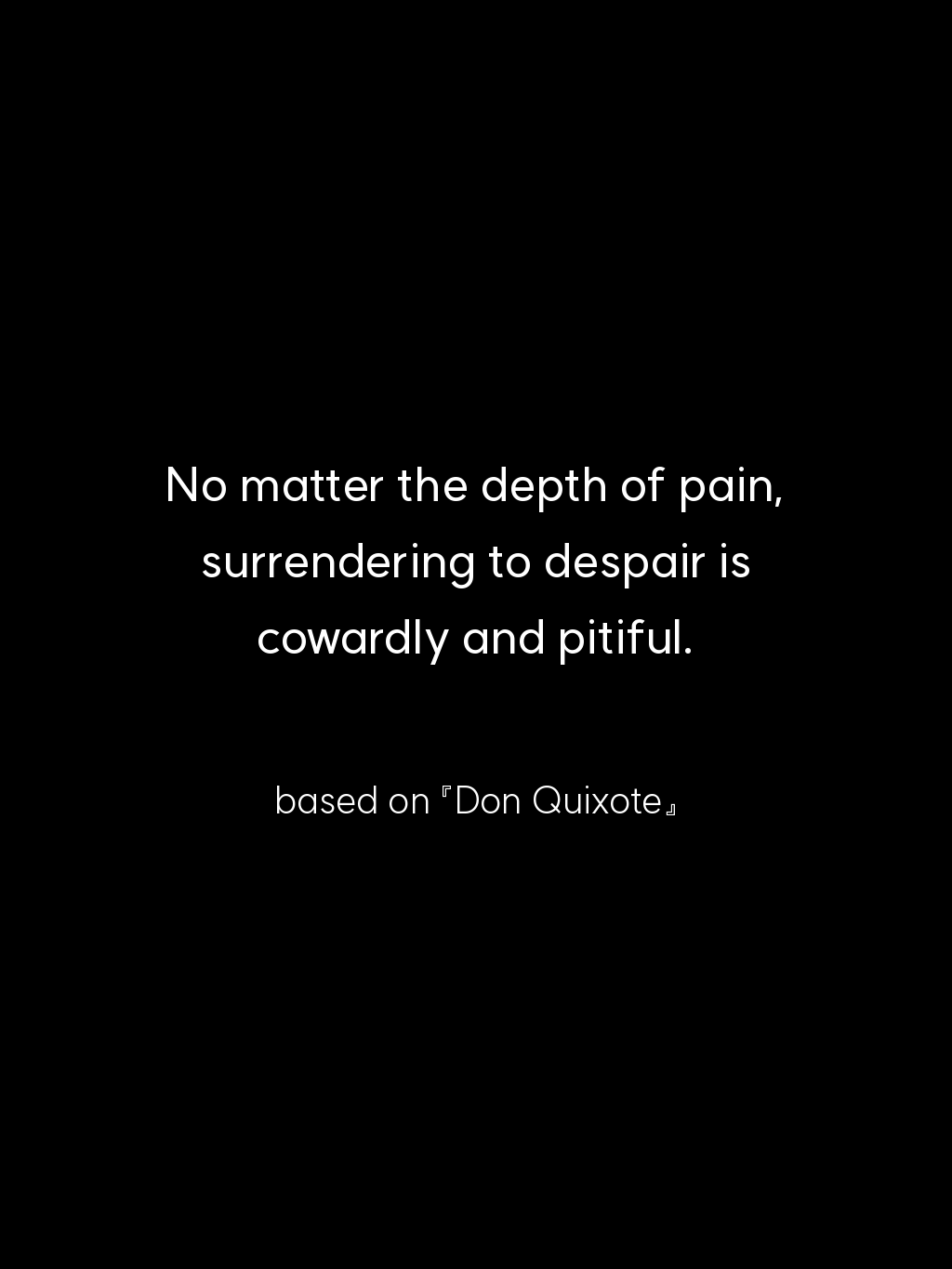 • No matter the depth of pain, surrendering to despair is cowardly and pitiful. – based on 『Don Quixote』