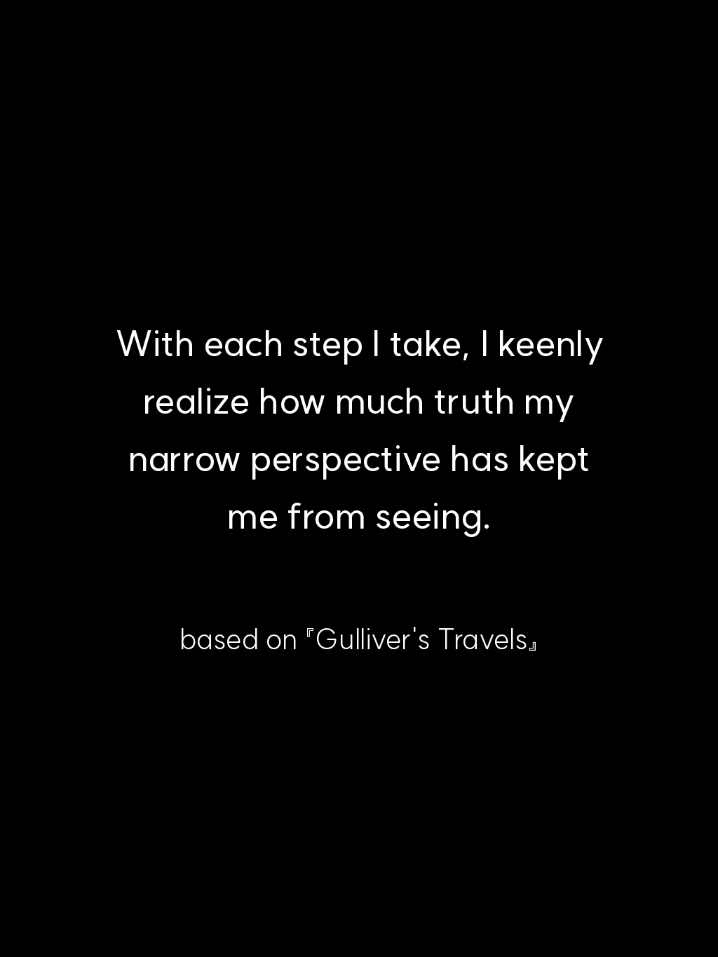 • With each step I take, I keenly realize how much truth my narrow perspective has kept me from seeing. – based on 『Gulliver’s Travels』