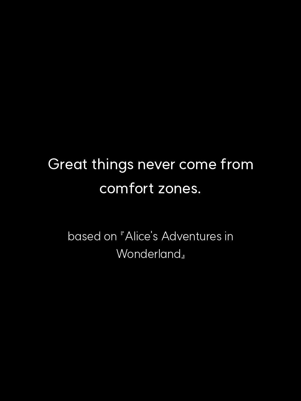 • Great things never come from comfort zones. – based on 『Alice’s Adventures in Wonderland』