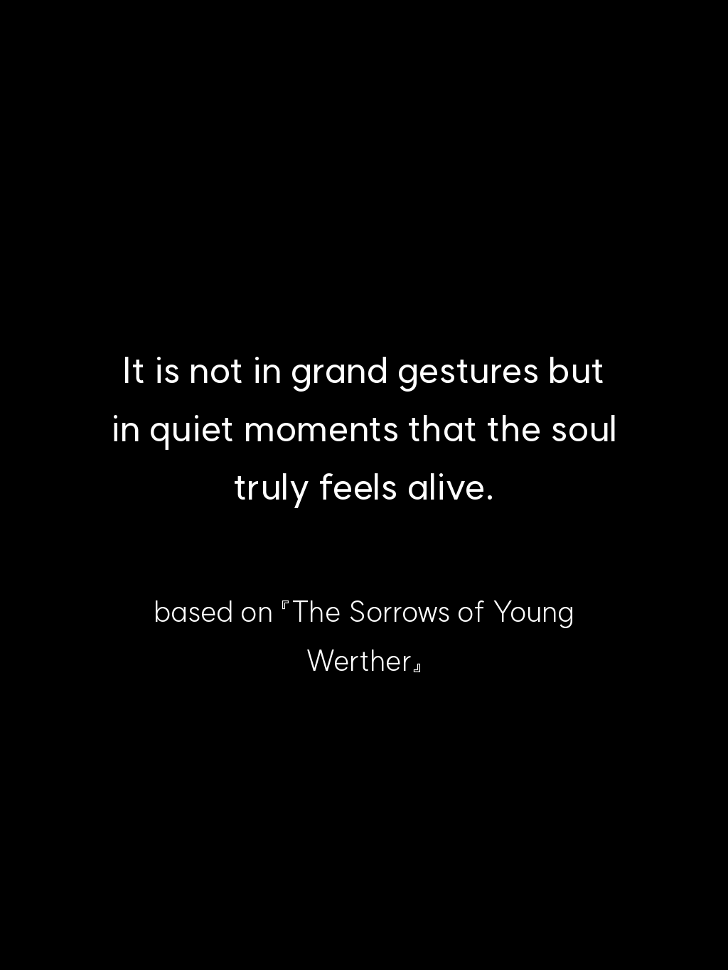 • It is not in grand gestures but in quiet moments that the soul truly feels alive. – based on 『The Sorrows of Young Werther』