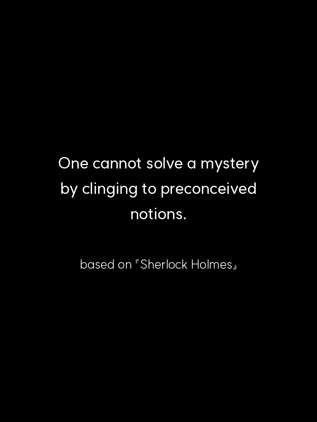 • One cannot solve a mystery by clinging to preconceived notions. – based on 『Sherlock Holmes』