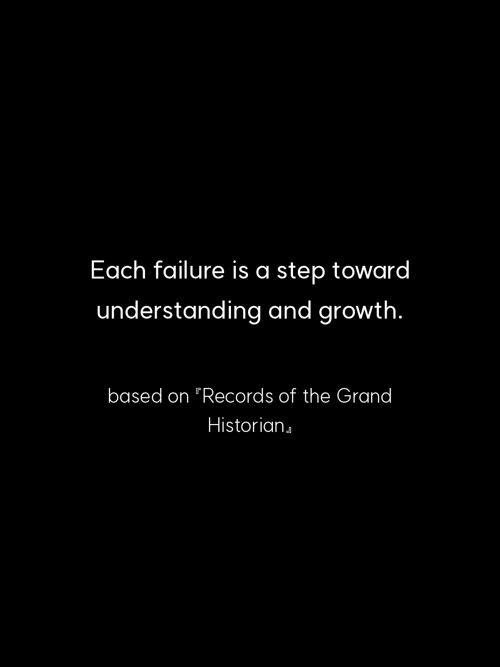 • Each failure is a step toward understanding and growth. – based on 『Records of the Grand Historian』