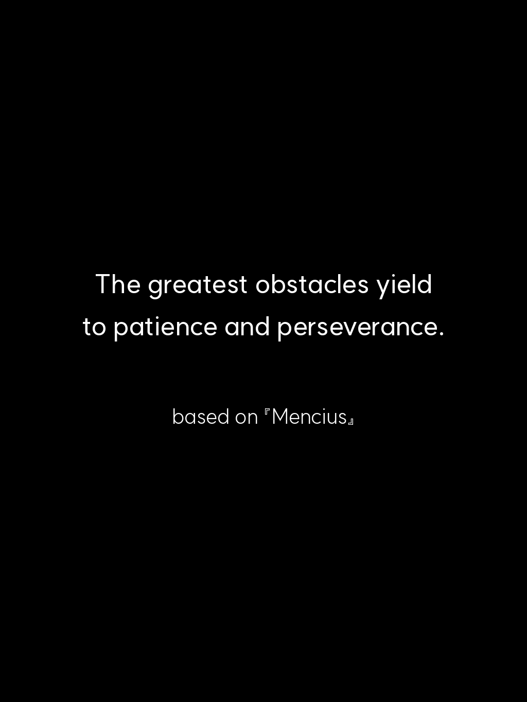 • The greatest obstacles yield to patience and perseverance. – based on 『Mencius』