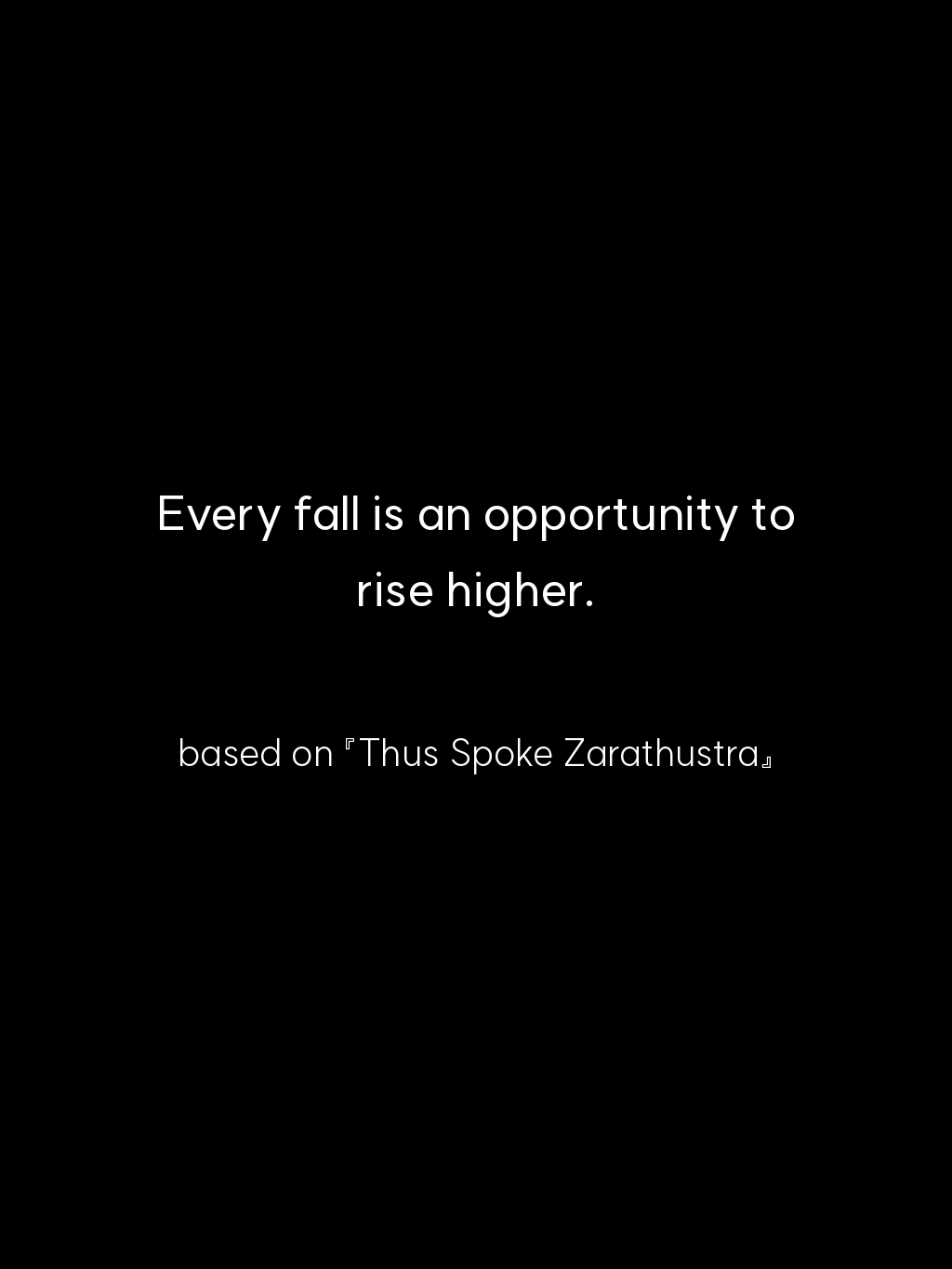 • Every fall is an opportunity to rise higher. – based on 『Thus Spoke Zarathustra』