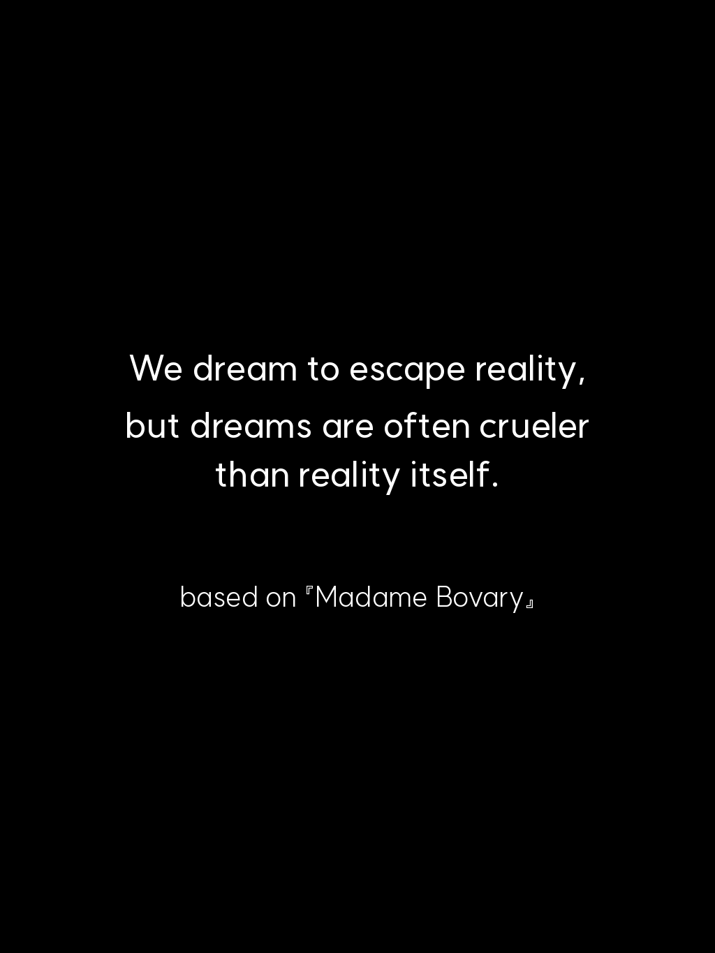 • We dream to escape reality, but dreams are often crueler than reality itself. – based on 『Madame Bovary』