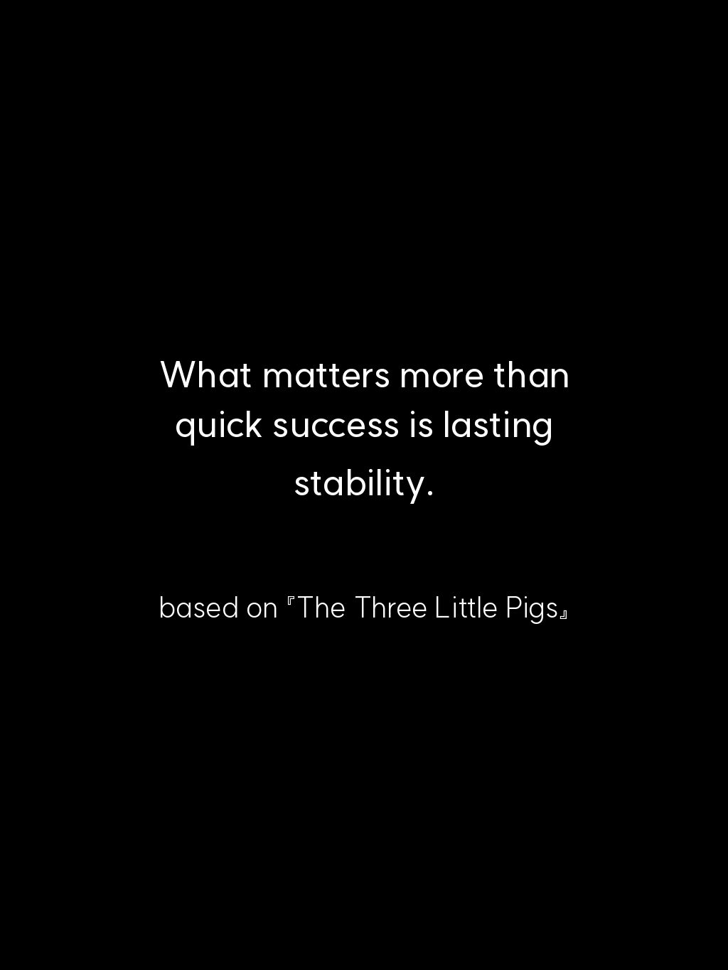 • What matters more than quick success is lasting stability. – based on 『The Three Little Pigs』