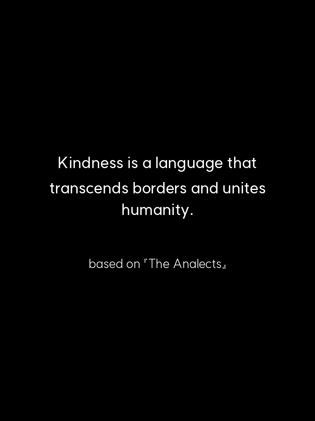 • Kindness is a language that transcends borders and unites humanity. – based on 『The Analects』