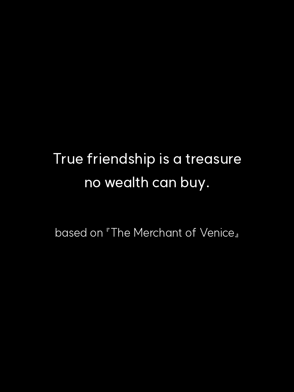 • True friendship is a treasure no wealth can buy. – based on 『The Merchant of Venice』