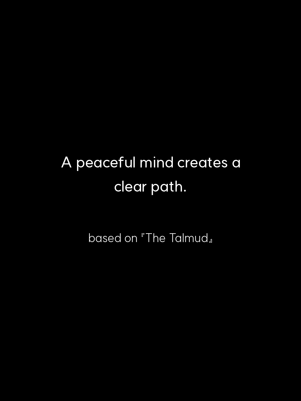 • A peaceful mind creates a clear path. – based on 『The Talmud』