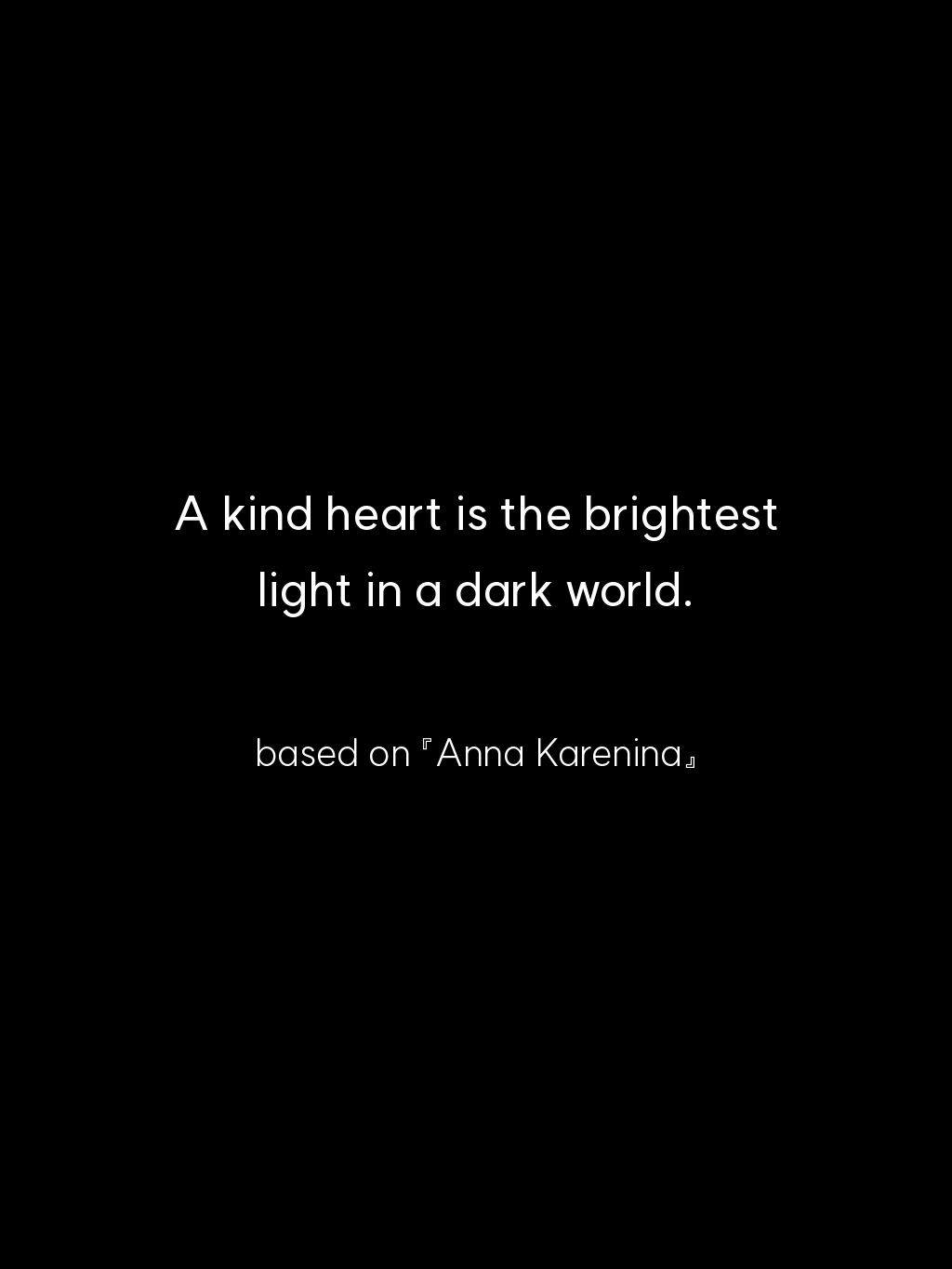 • A kind heart is the brightest light in a dark world. – based on 『Anna Karenina』