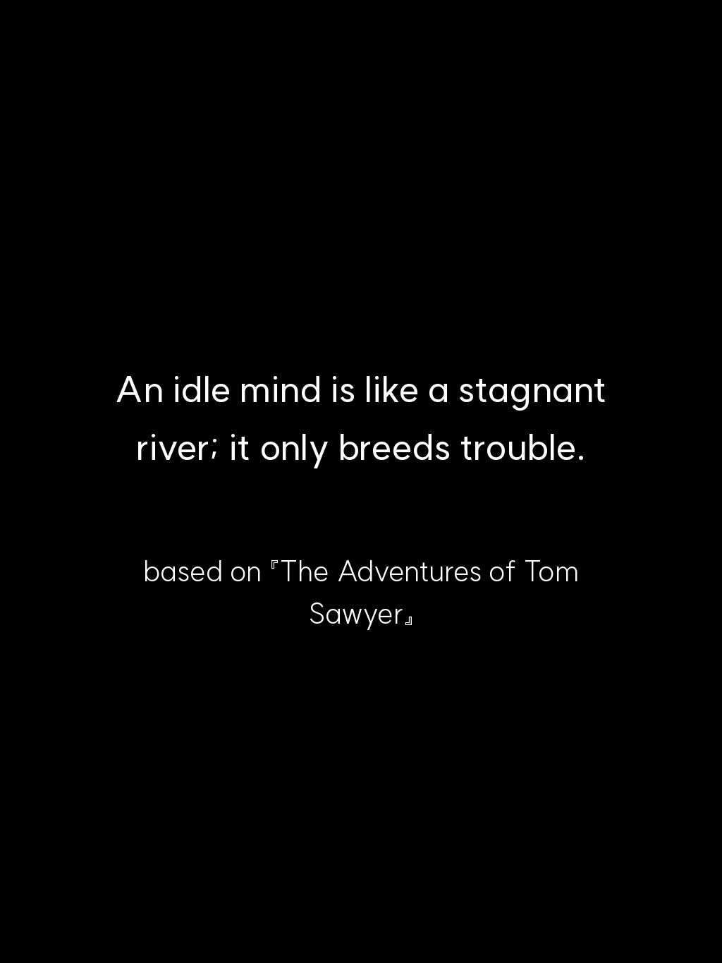 • An idle mind is like a stagnant river; it only breeds trouble. – based on 『The Adventures of Tom Sawyer』