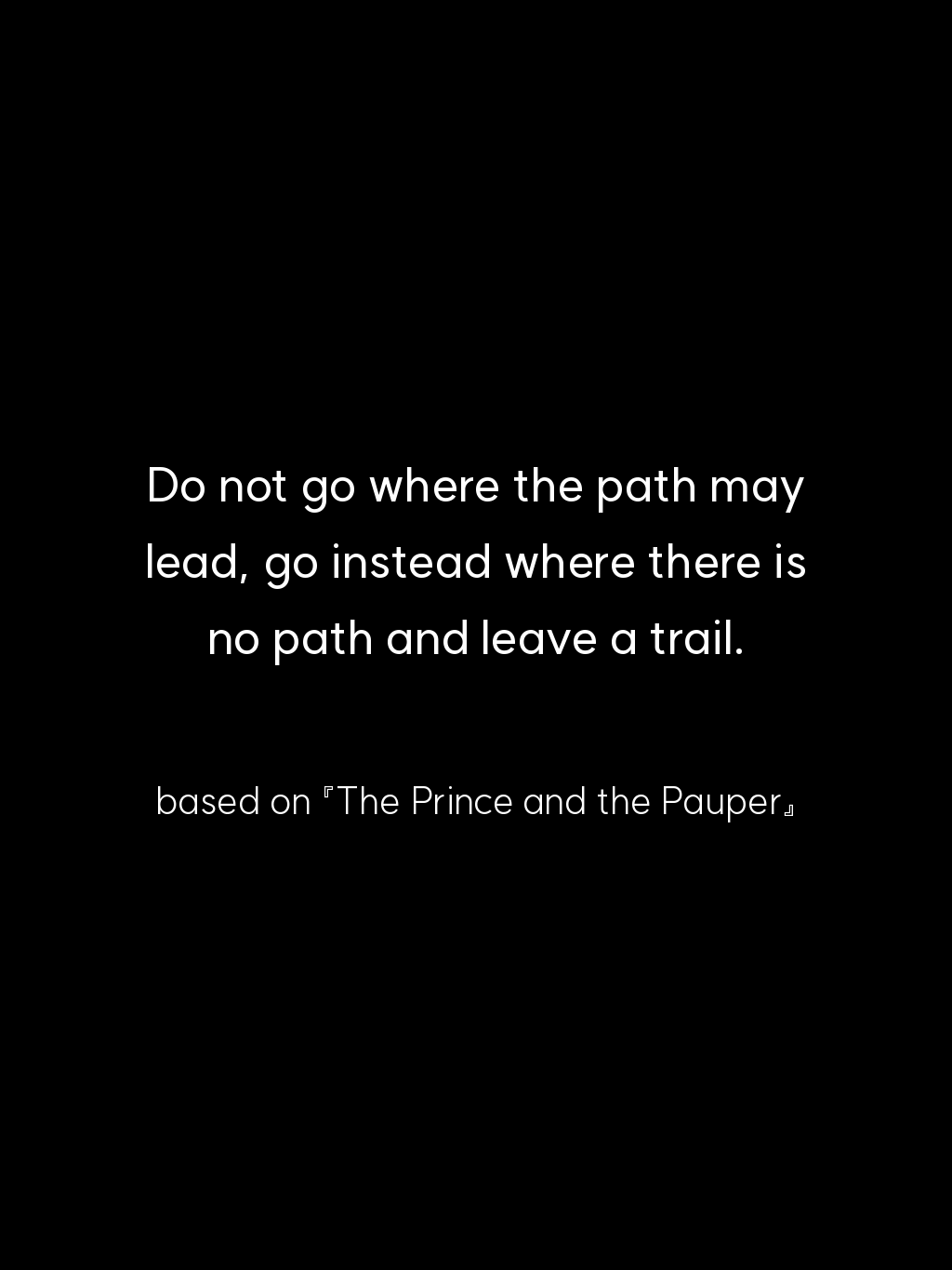 • Do not go where the path may lead, go instead where there is no path and leave a trail. – based on 『The Prince and the Pauper』