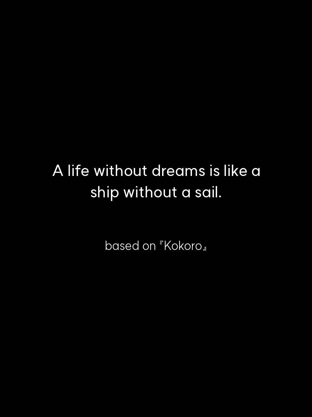 • A life without dreams is like a ship without a sail. – based on 『Kokoro』