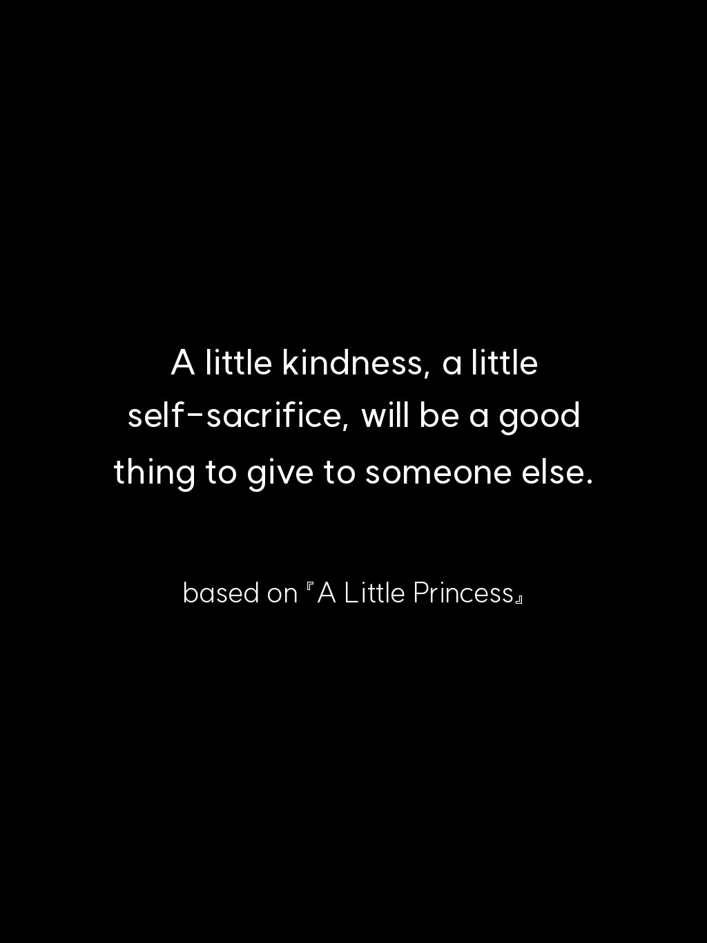• A little kindness, a little self-sacrifice, will be a good thing to give to someone else. – based on 『A Little Princess』