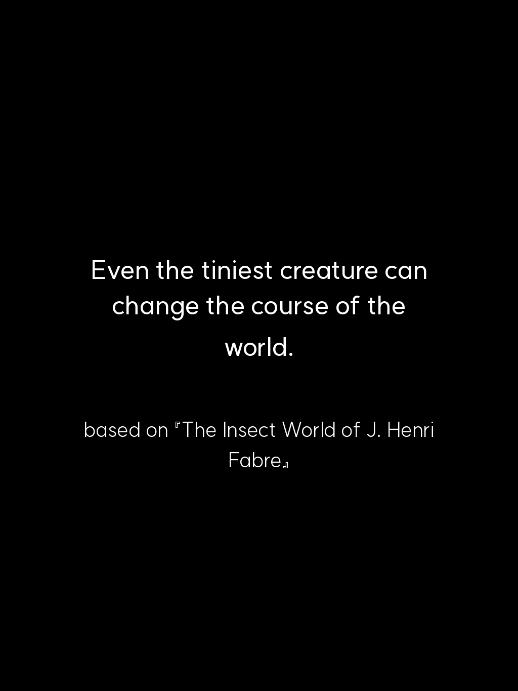 • Even the tiniest creature can change the course of the world. – based on 『The Insect World of J. Henri Fabre』
