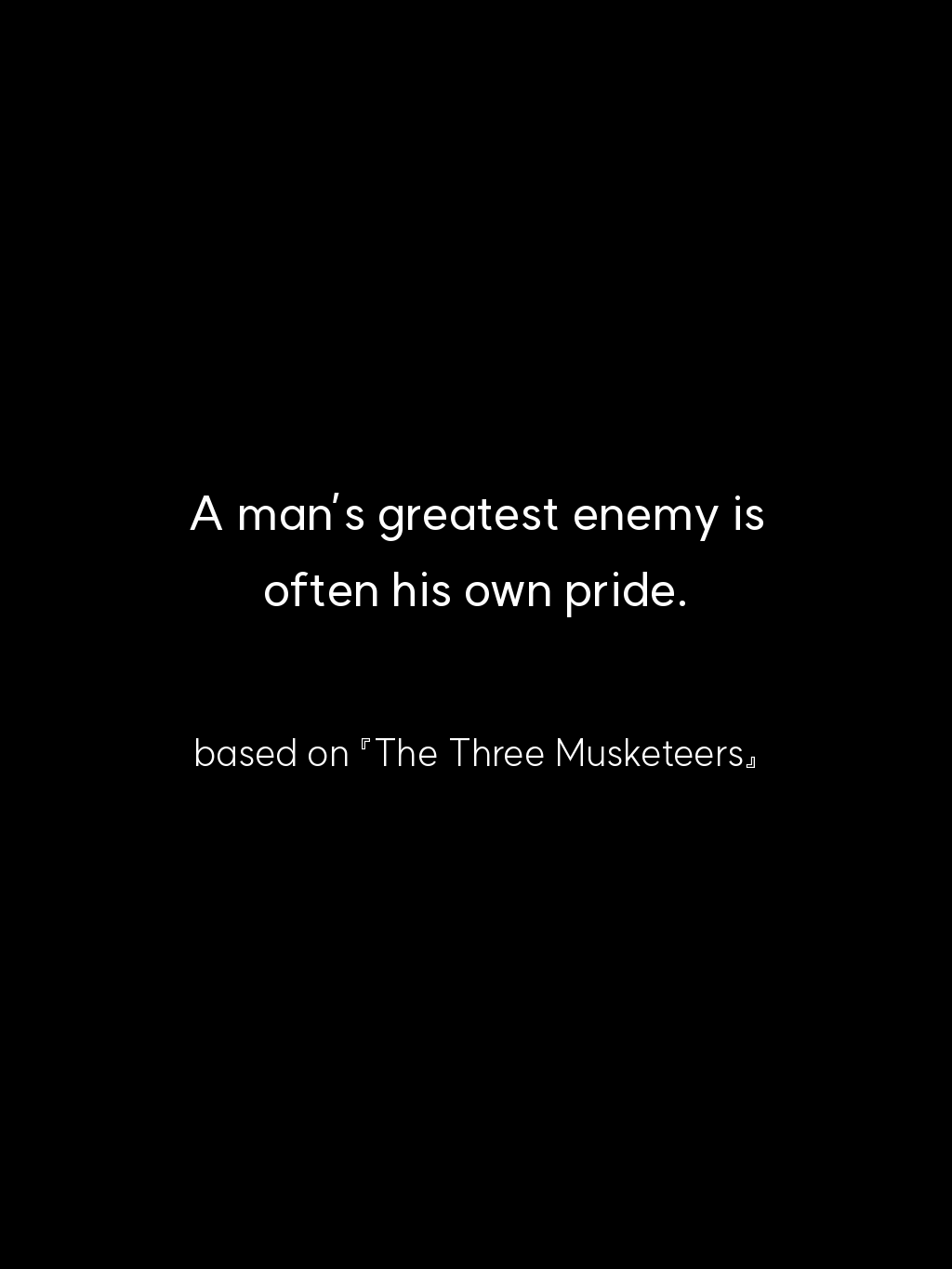 • A man’s greatest enemy is often his own pride. – based on 『The Three Musketeers』