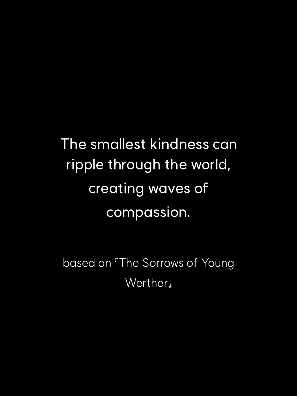 • The smallest kindness can ripple through the world, creating waves of compassion. – based on 『The Sorrows of Young Werther』