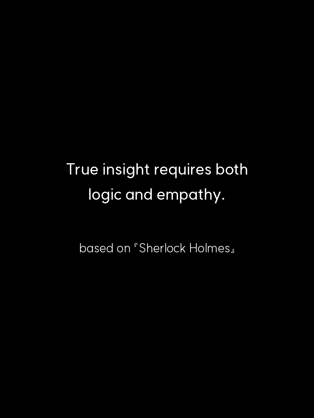 • True insight requires both logic and empathy. – based on 『Sherlock Holmes』