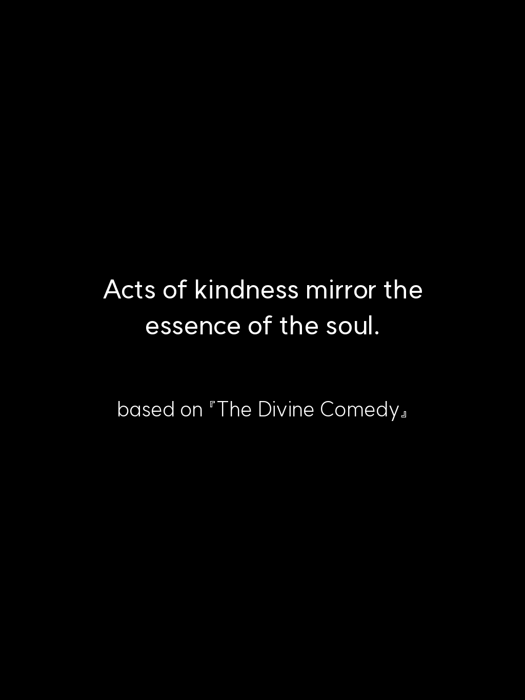 • Acts of kindness mirror the essence of the soul. – based on 『The Divine Comedy』